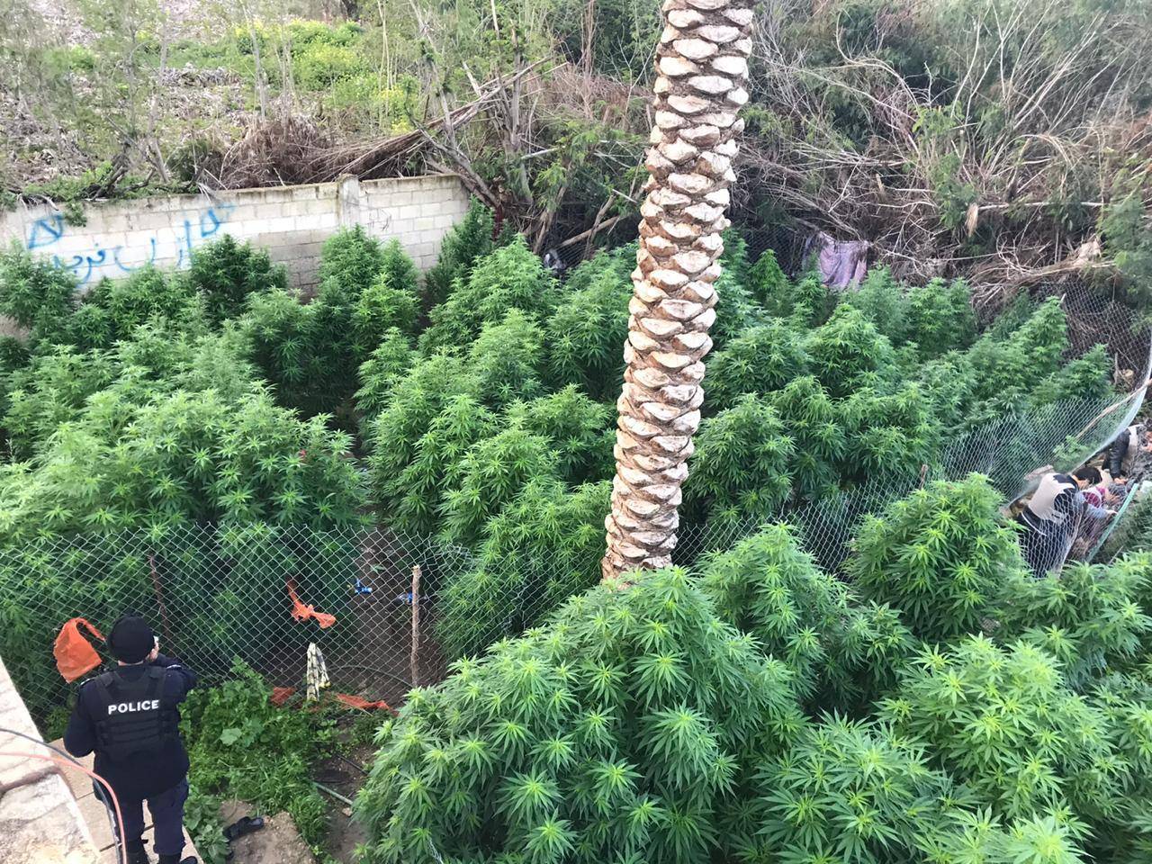 ادارة مكافحة المخدرات وشرطة غرب البلقاء يضبطان ١ طن من اشتال الماريجوانا المخدرة بعد مداهمة موقعين استخدما لزراعتها
