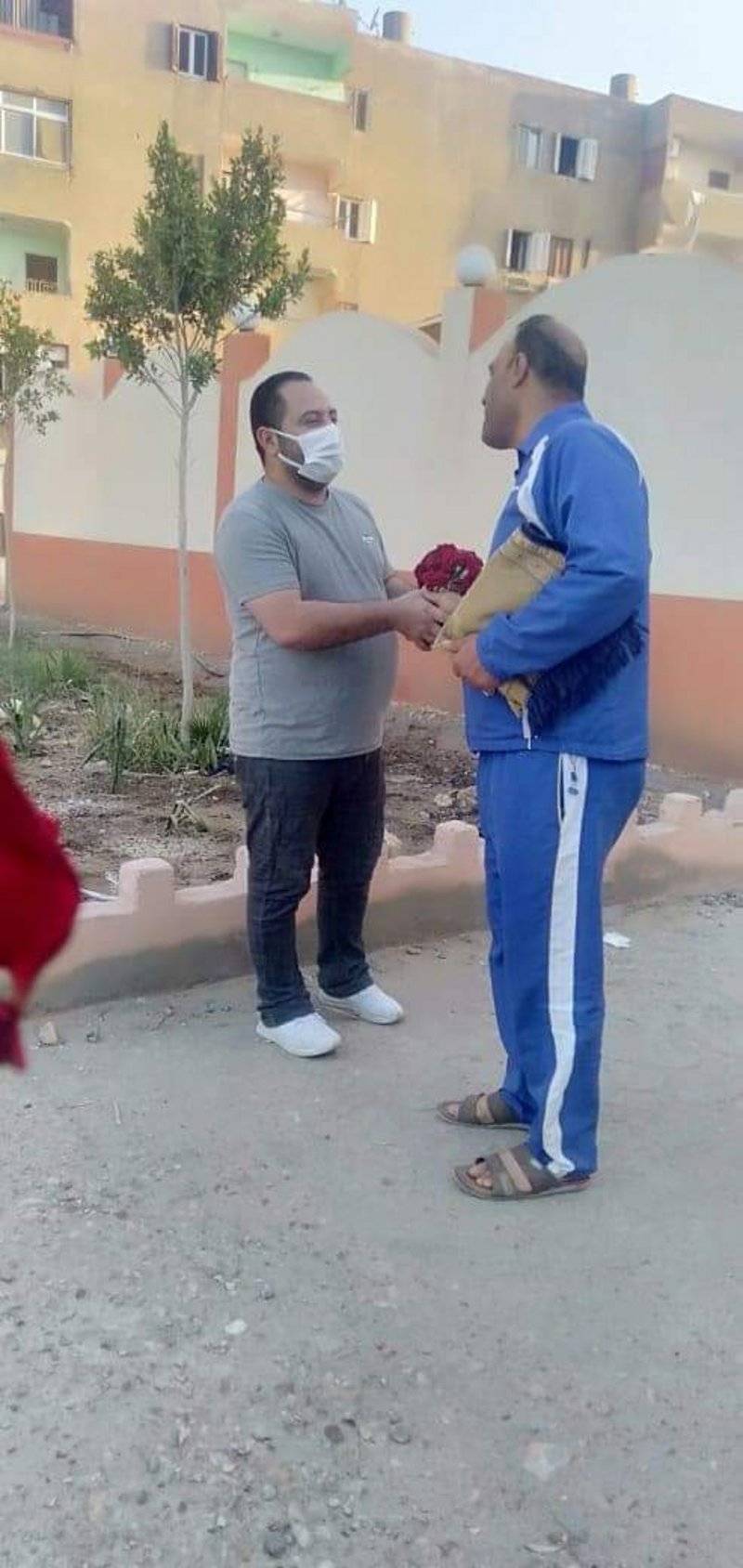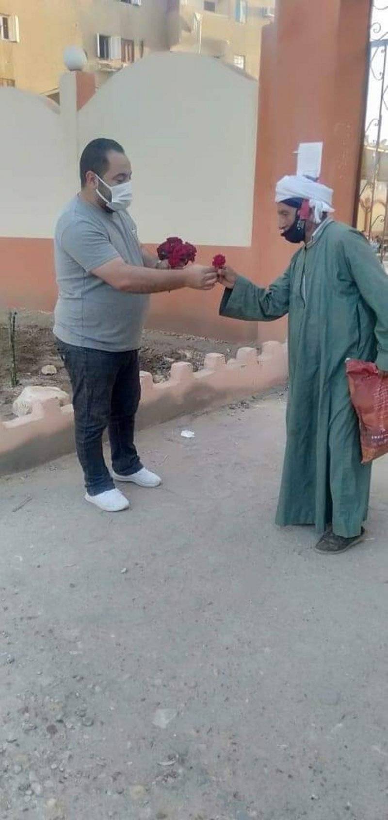 وقام الشاب مرقص موريس بتوزيع ورود على المصلين والأطفال عقب الانتهاء من صلاة عيد الفطر المبارك، بمسجد الإمام علي بن أبى طالب بمدينة بني سويف الجديدة؛ وفق "اليوم السابع".