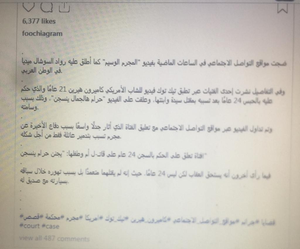 فتاة تعلق على الحكم بالسجن 24 عام على قاتـ-ل أم وطفلها: "يجنن حرام ينسجن!" فيما رأى آخرون أنه يستحق العقاب لكن ليس 24 عامًا، حيث إنه لم يقتلهما متعمدًا بل بسبب تهوره خلال سباقه بسيارته مع صديق له.