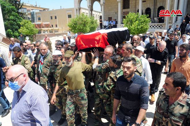 وانطلق موكب تشييع الراحل جبريل الذي وافته المنية ظهر أول أمس من مشفى أمية إلى جامع العثمان بالميسات ليصلى عليه صلاة الجنازة عقب أداء صلاة الظهر ومن ثم ووري الثرى في مقبرة الشهداء بمخيم اليرموك.