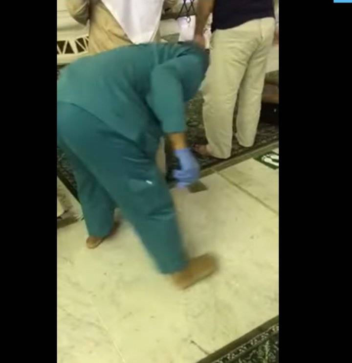 أظهر مقطع صور من داخل المسجد الحرام إزالة علامات التباعد التي تم وضعها بداية جائحة كورونا.