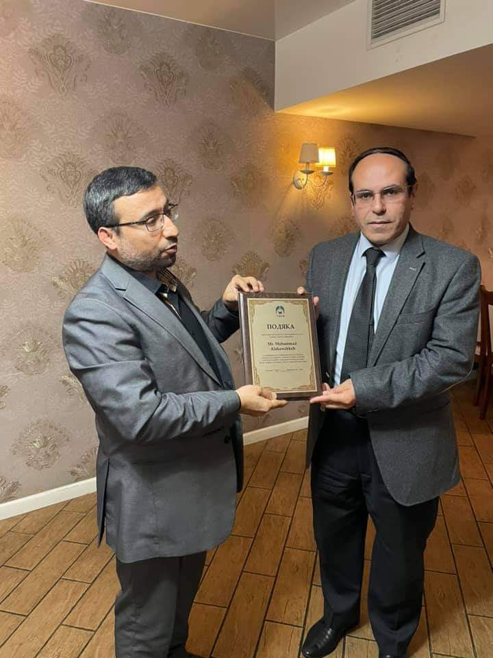 هذا وقد قدّم شهادة ودرع التقدير الدكتور عماد أبو الرُب رئيس المركز وعضو المجلس العام التابع لإدارة سياسة القوميات والحريات الدينية في مكتب رئاسة الوزراء الاوكرانية.