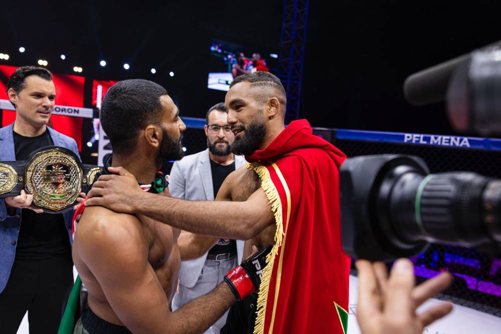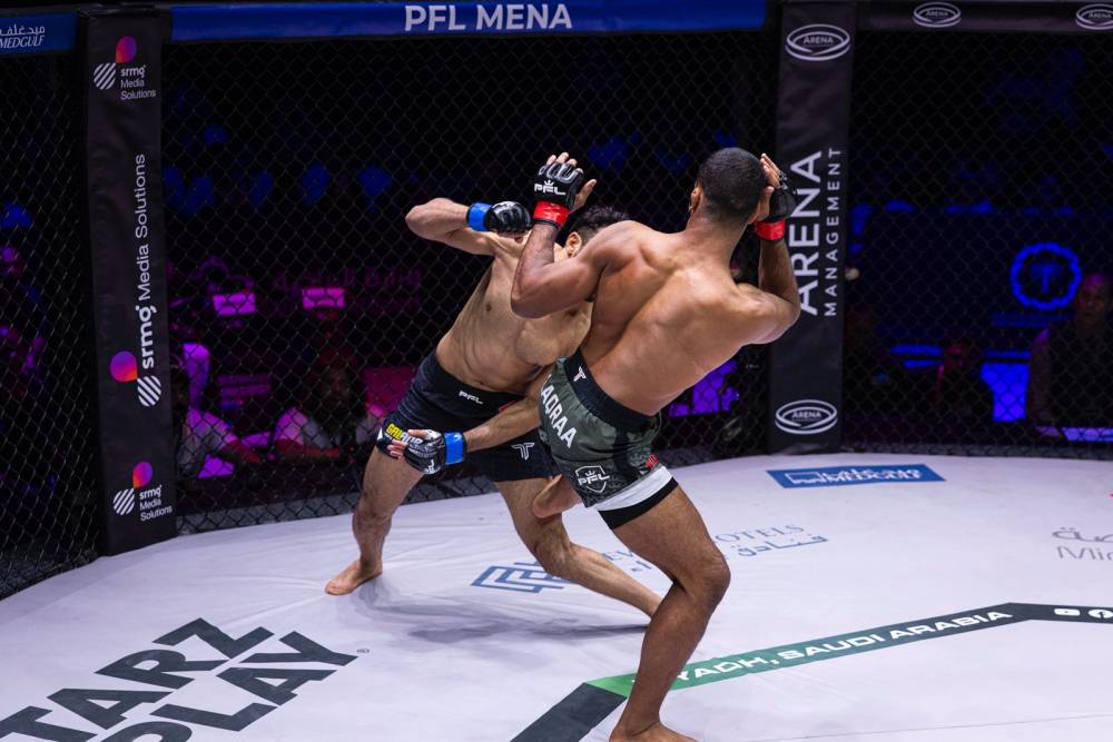 اختتمت في صالة "ذا أرينا” بالعاصمة السعودية الرياض منافسات الدور نصف النهائي من بطولة دوري المقاتلين المحترفين للفنون القتالية المختلطة في منطقة الشرق الأوسط وشمال أفريقيا، وسط حضور جماهيري كبير وأجواء تنافسية مثيرة، لتتحدد بذلك ملامح النزالات النهائية المرتقبة التي ستقام في مدينة الخبر يوم 5 ديسمبر المقبل.