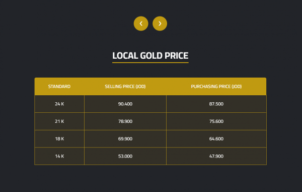 وبحسب التسعيرة الصادرة عن النقابة العامة لأصحاب محالّ تجارة وصياغة الحلي والمجوهرات، ارتفعت أسعار الذهب بمقدار دينار و10 قروش للغرام الواحد، ليصل سعر بيع غرام الذهب عيار 21 –الأكثر طلبًا من قبل المواطنين– إلى 78.90 دينارًا لغايات البيع من محالّ الصاغة، مقابل 75.60 دينارًا لغايات الشراء.