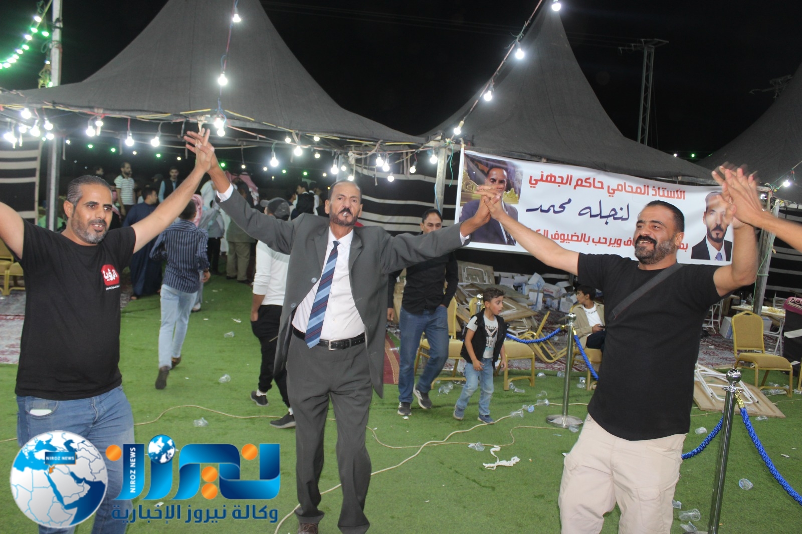 كما أقام المحامي حاكم الجهني مأدبة عشاء فاخرة بهذه المناسبة، معربًا عن شكره وتقديره لكل من شاركهم فرحتهم وقدم لهم التهاني والتبريكات بزفاف نجله.