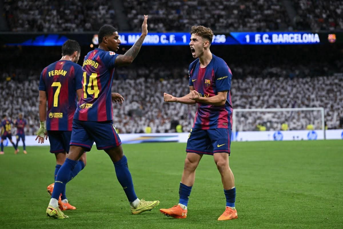 وسجل ثنائية ريال مدريد كليان مبابي في الدقيقة (22) وجود بيلنغهام (43)، بينما سجل هدف برشلونة فيرمين لوبيز في الدقيقة (38).