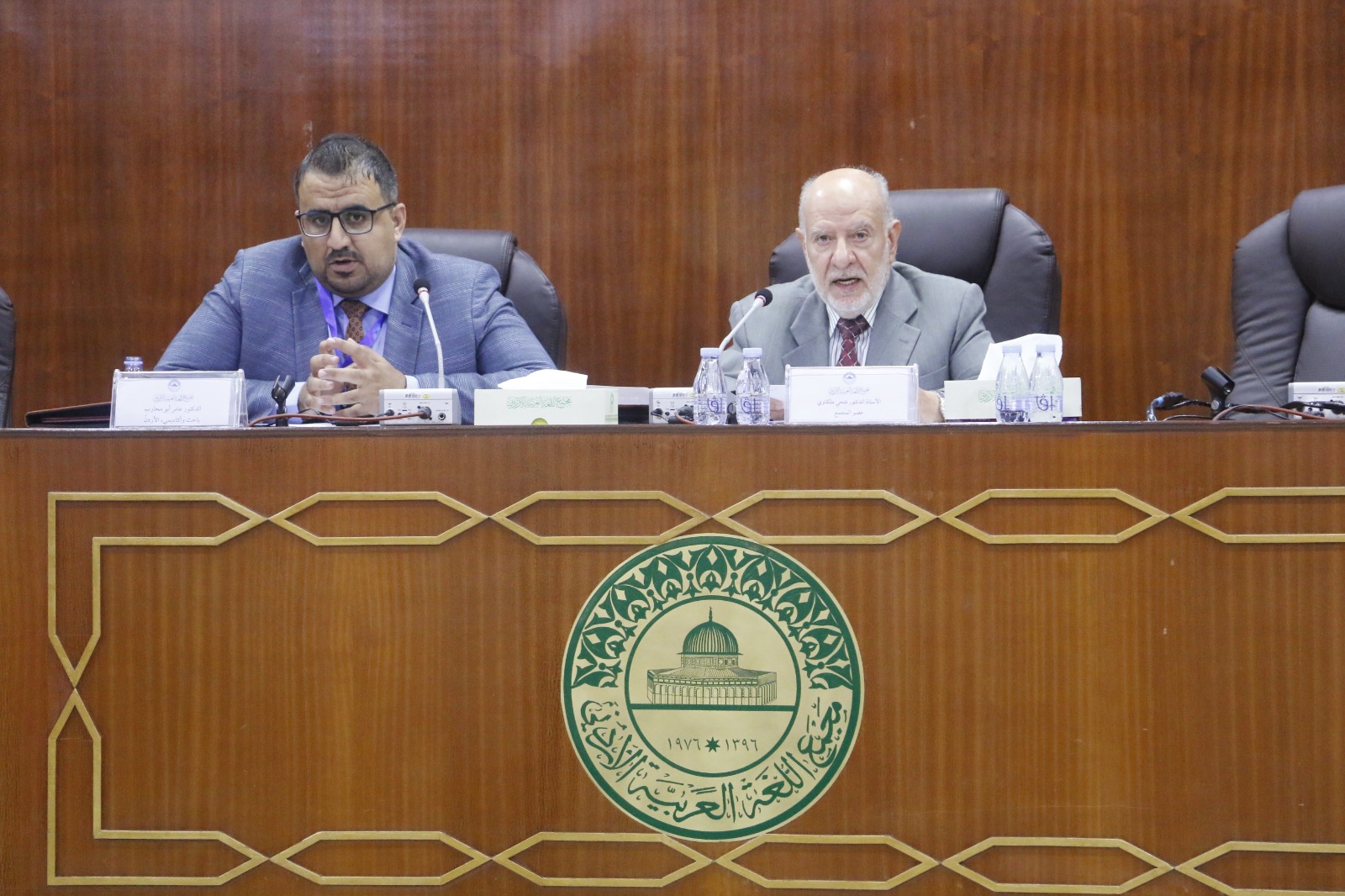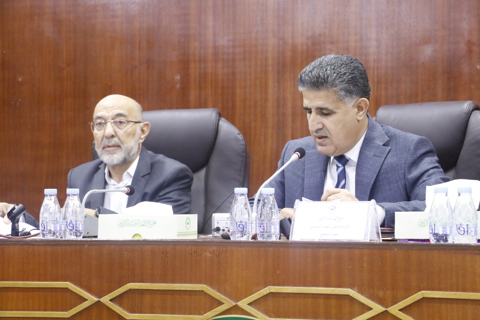 الجلسة الأولى برئاسة عضو المجمع الأستاذ الدكتور محمد السعودي، وشارك فيها كل من: