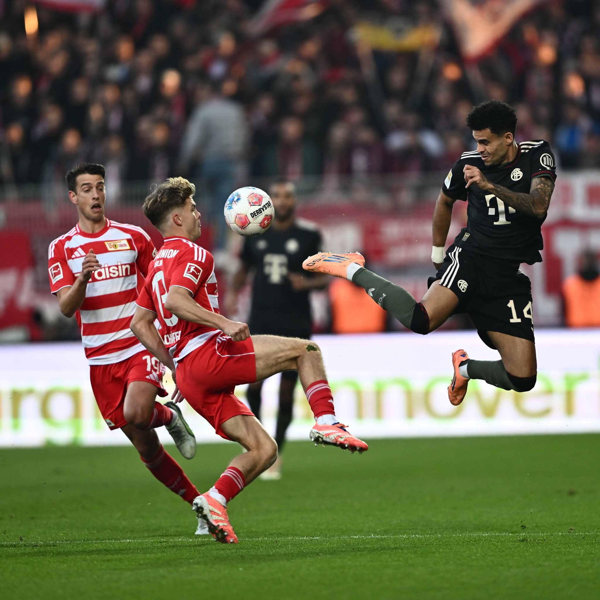 وسجل لويس دياز، وهاري كين هدفي البايرن في الدقيقتين (38 و90+3)، فيما سجل دانيلو ديوخي ثنائية يونيون برلين في الدقيقتين (27، و83).
