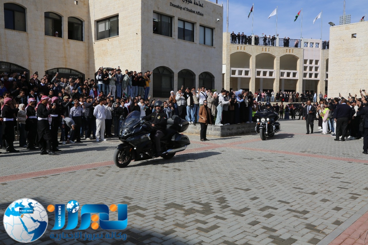 وتخلل الحفل فقرات فنية وطنية قدمتها فرقة وكورال الجامعة إلى جانب فقرة شعرية ألقاها الطالب عدي أبو عليوه ، إضافة إلى عروض موسيقات الأمن العام ومشاركة شبكة الدراجون العرب، وسط أجواء احتفالية جسدت معاني الولاء والانتماء للوطن وقيادته الهاشمية.