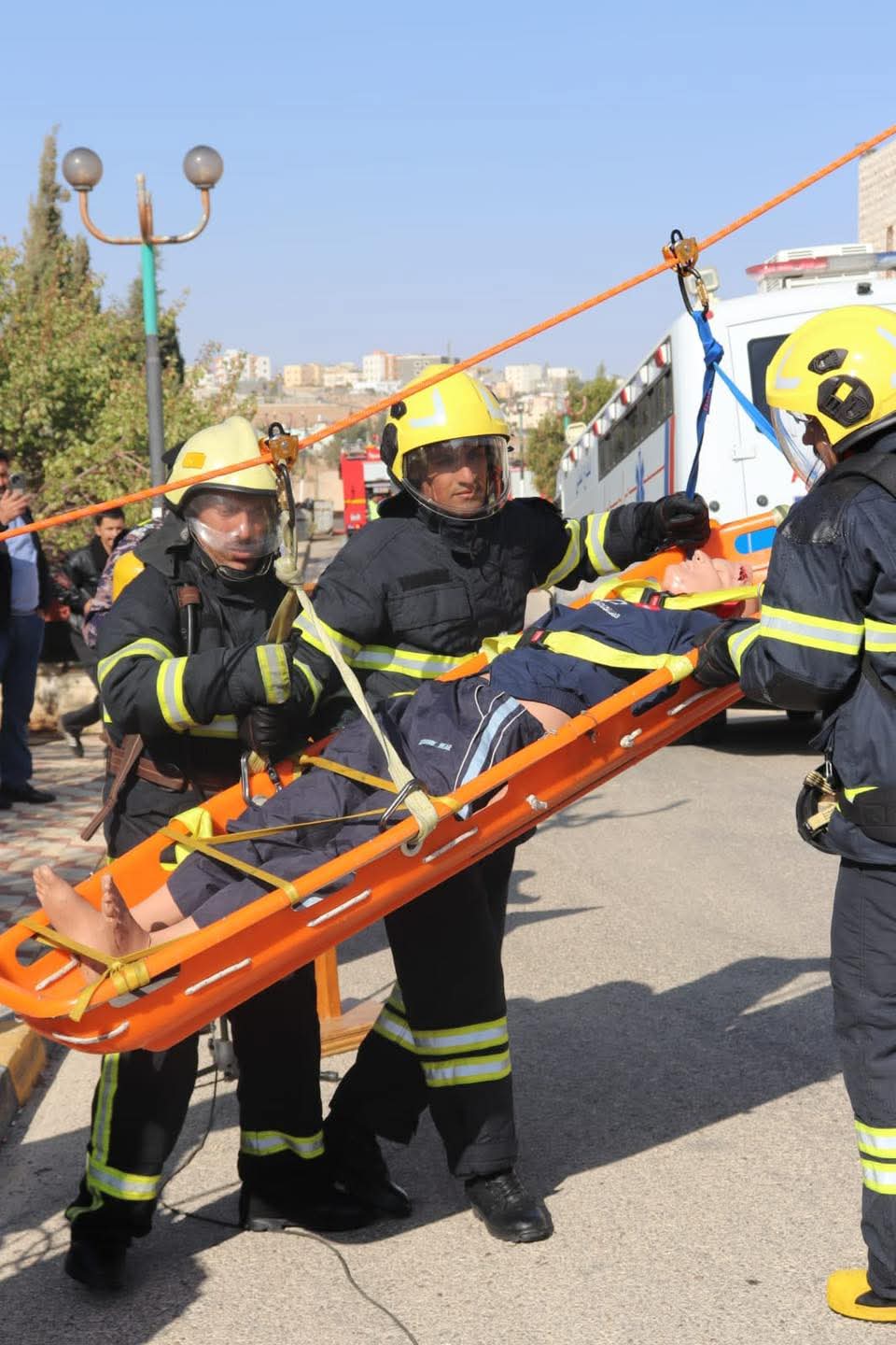 واقيم التمرين في مركز الايواء للرعاية والتأهيل / مديرية تنمية الطفيلة بحضور قائد أمن إقليم الجنوب العميد محمود الفايز ومحافظ الطفيلة الدكتور سلطان الماضي، واشتمل على فعاليات للاطفاء والاسعاف والإخلاء والإنزال.