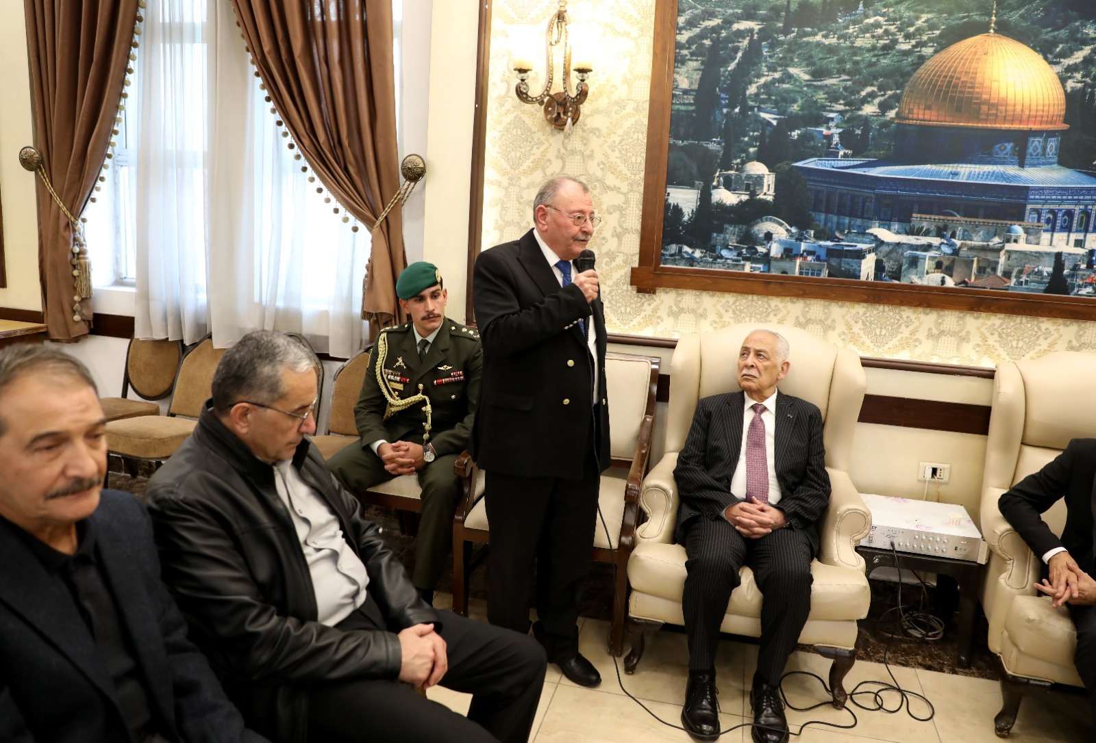 مندوبا عن جلالة الملك عبدالله الثاني وسمو الأمير الحسين بن عبدالله الثاني، ولي العهد، قدم رئيس الديوان الملكي الهاشمي يوسف حسن العيسوي، اليوم الأربعاء، واجب العزاء إلى عشائر القاضي والشرايعة/عباد والمجالي ومنّاع.
