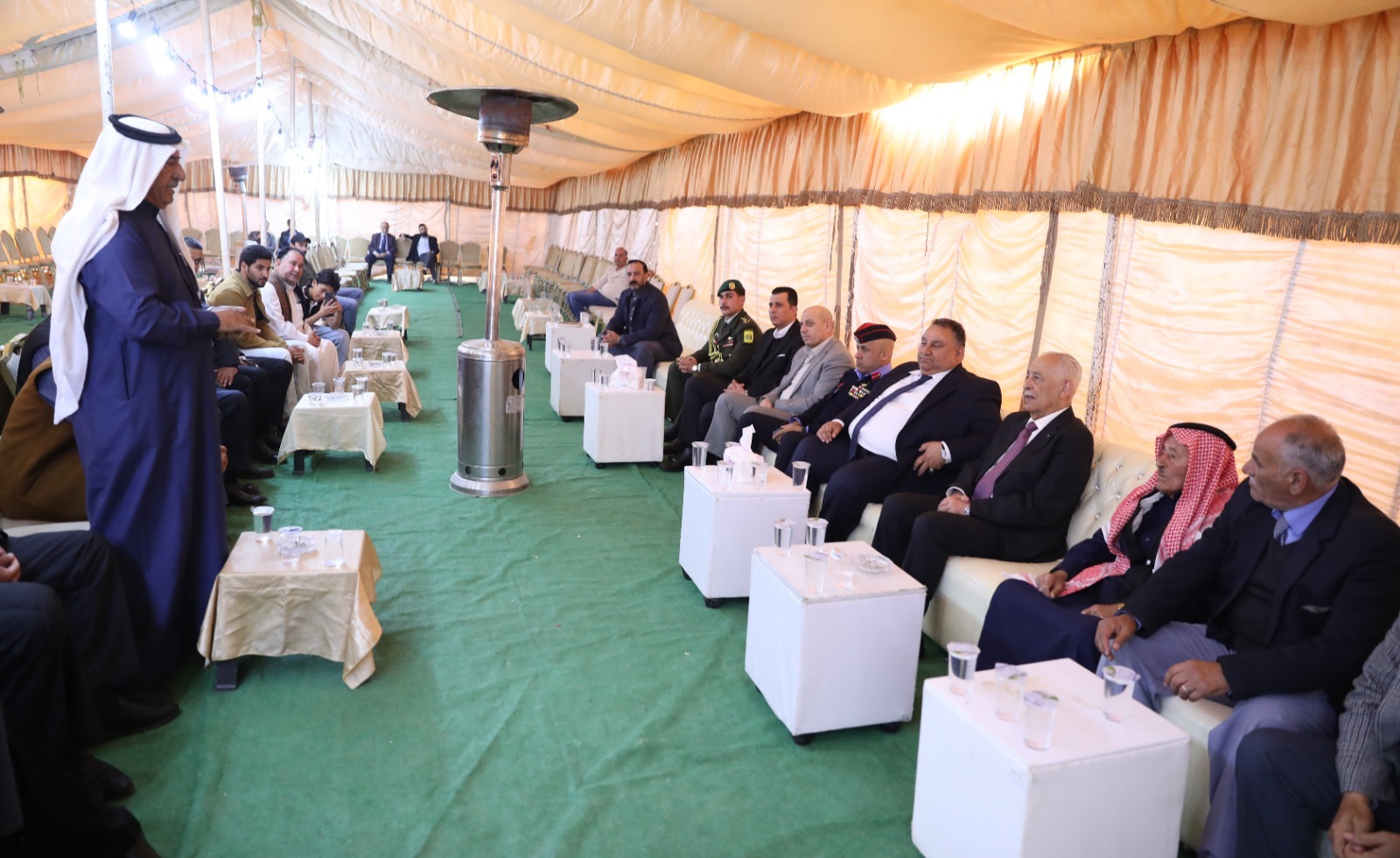 *وفي منطقة دابوق بمحافظة العاصمة عمان،* نقل العيسوي، خلال زيارته بيت عزاء المرحوم عيد كامل الشرايعة العبادي، تعازي ومواساة جلالة الملك وسمو ولي العهد، إلى ذوي الفقيد وعموم عشيرة الشرايعة وعموم عشائر عباد، سائلا المولى عز وجل أن يتغمده بواسع رحمته.