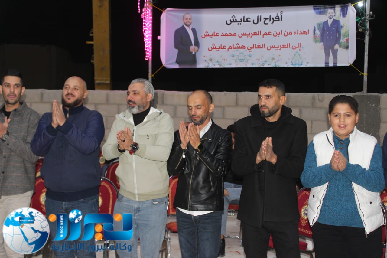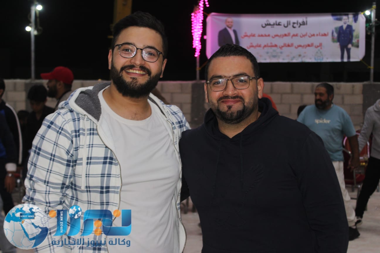 في أجواء مفعمة بالفرح والسعادة، احتفلت عائلة آل عايش اليوم الخميس بزفاف الشاب هشام محمد علي عايش، وذلك في حفل مهيب شهد حضورًا واسعًا من الأهل والأصدقاء ووجهاء المنطقة.