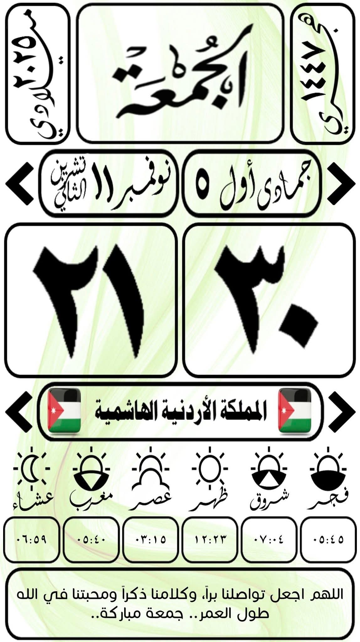 مواقيت الصلاة لليوم الجمعة في الأردن