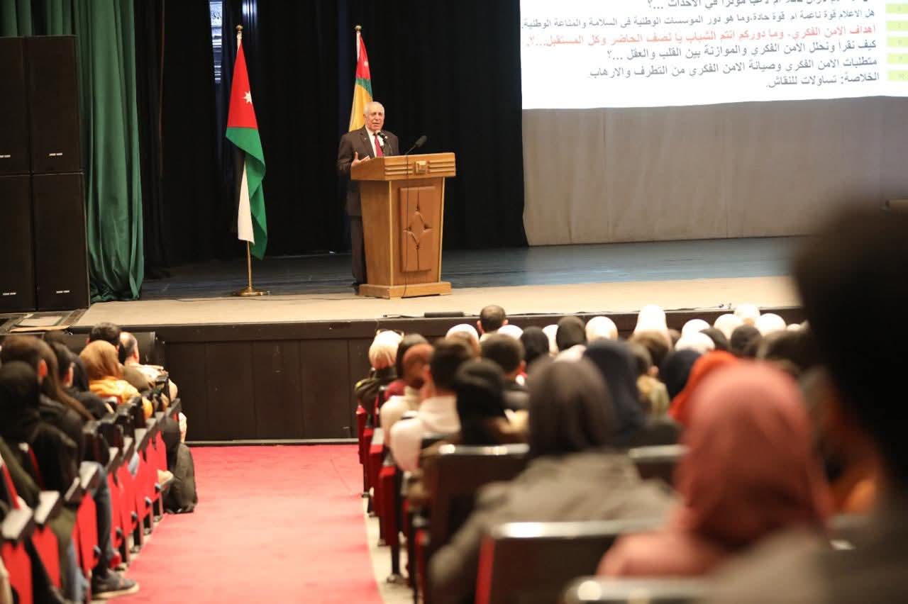 وأكد الدكتور المعايطة أن الأمن الفكري يشكّل أساسًا في مواجهة الأفكار المتطرفة ومحاولات التأثير على وعي الأجيال، مشيراً إلى أن وعي الطلبة وثقافتهم الأمنية يمثلان جزءاً مهماً من المنظومة الوطنية للحفاظ على استقرار المجتمع، ومشدداً على ضرورة تعزيز الانتماء الوطني، والتحقق من مصادر المعلومات، والتمسك بالقيم الأردنية التي تقوم على الاعتدال والوسطية.