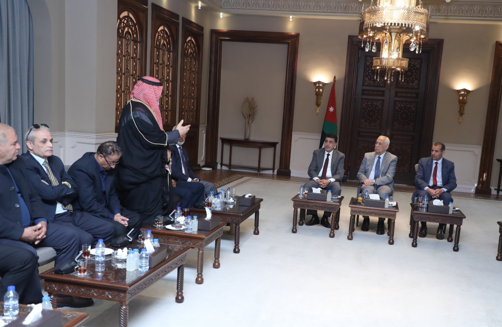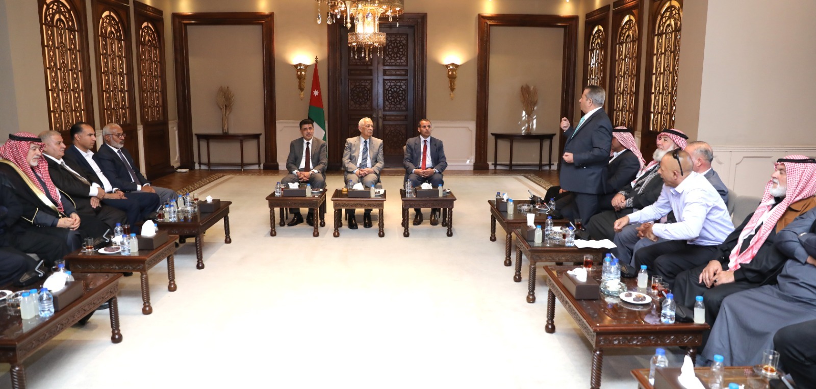 عمان- : التقى رئيس الديوان الملكي الهاشمي يوسف حسن العيسوي، اليوم الأربعاء، في الديوان الملكي الهاشمي، وفدًا من شباب وشابات لواء الكورة، ووفدًا من ملتقى ديوان عشائر النعيم في شمال المملكة.