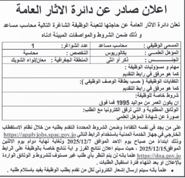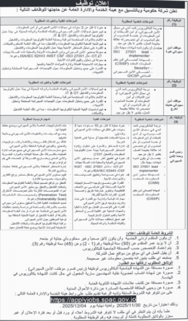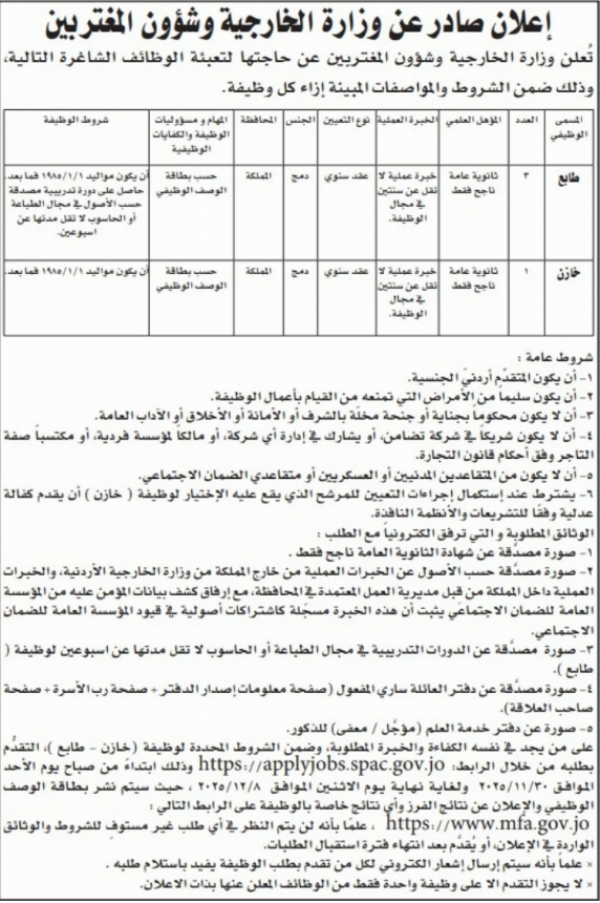 : أعلنت مؤسسات حكومية اليوم الأحد، عن وظائف شاغرة ضمن شروط محددة.