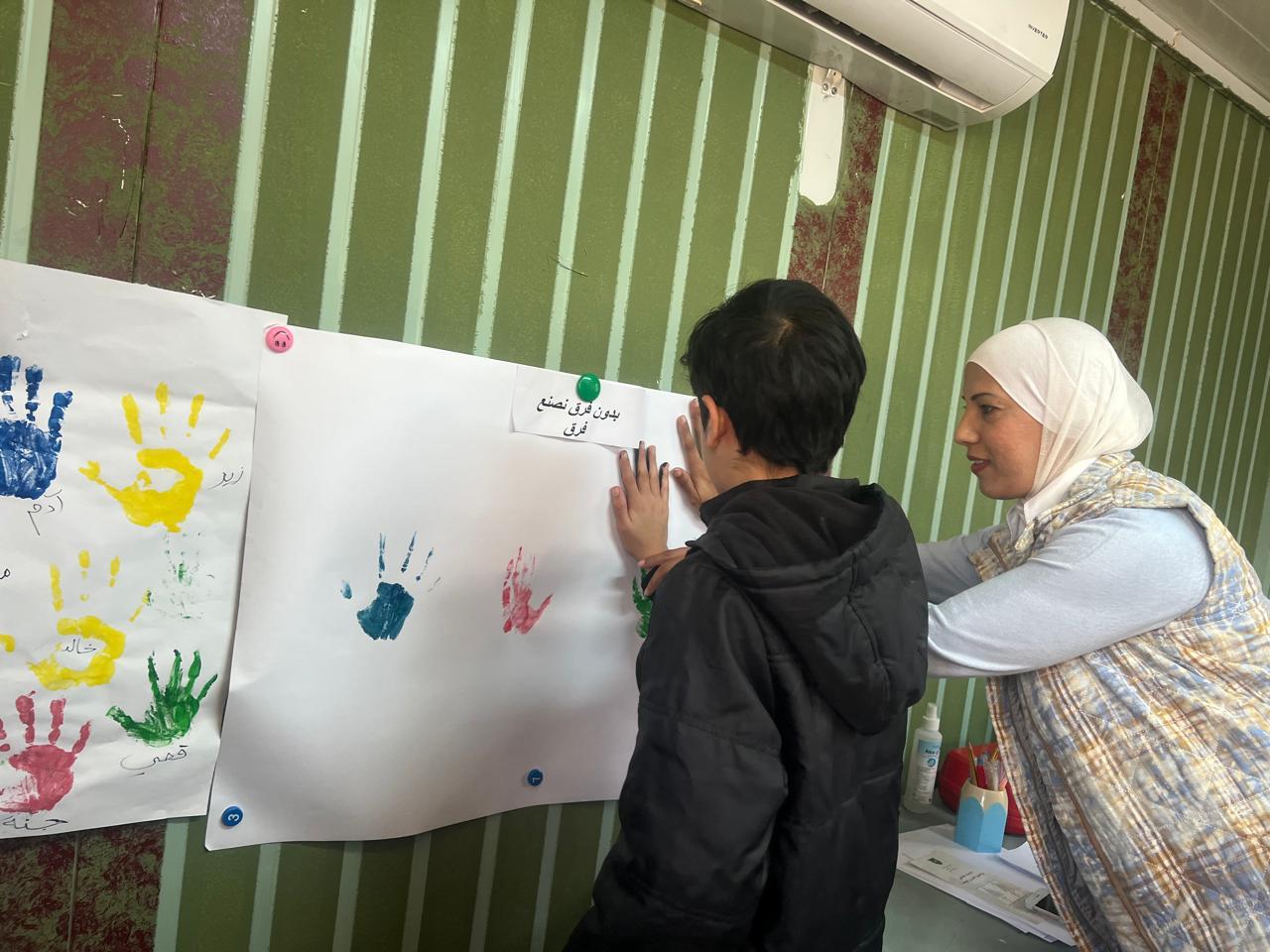 وشاركت الخريشا ترافقها  مديرة المدرسة عليا أبو رمان ، فريق وطلبة التعليم الدامج النشاط الذي  قاموا به ، وهو نشاط  "بدون فرق نعمل فرق ...بصمة طلابنا ).