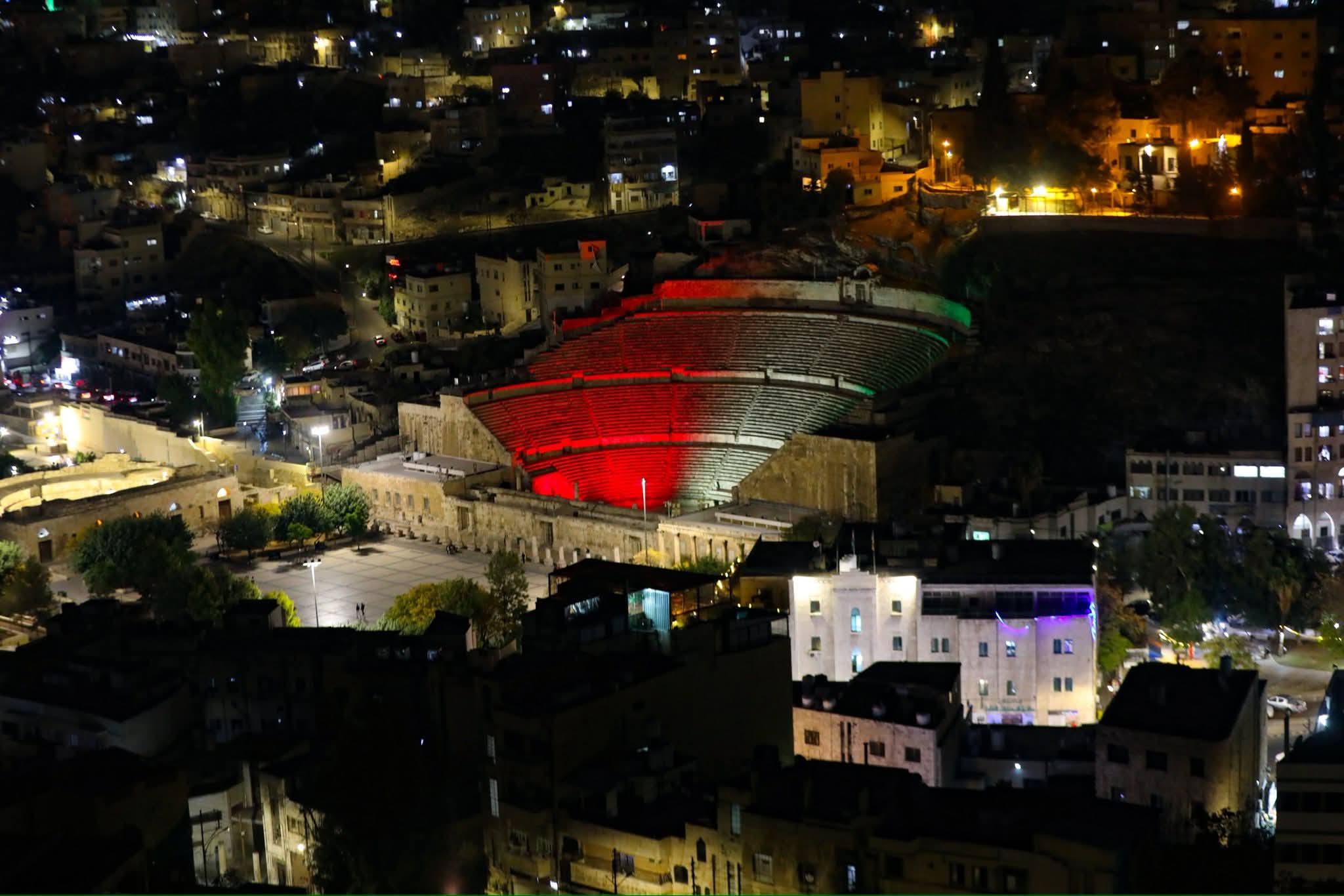 أمانة عمّان تضيء جبل القلعة والمدرج الروماني بألوان علم الإمارات احتفالًا بعيد الاتحاد الـ54...صور