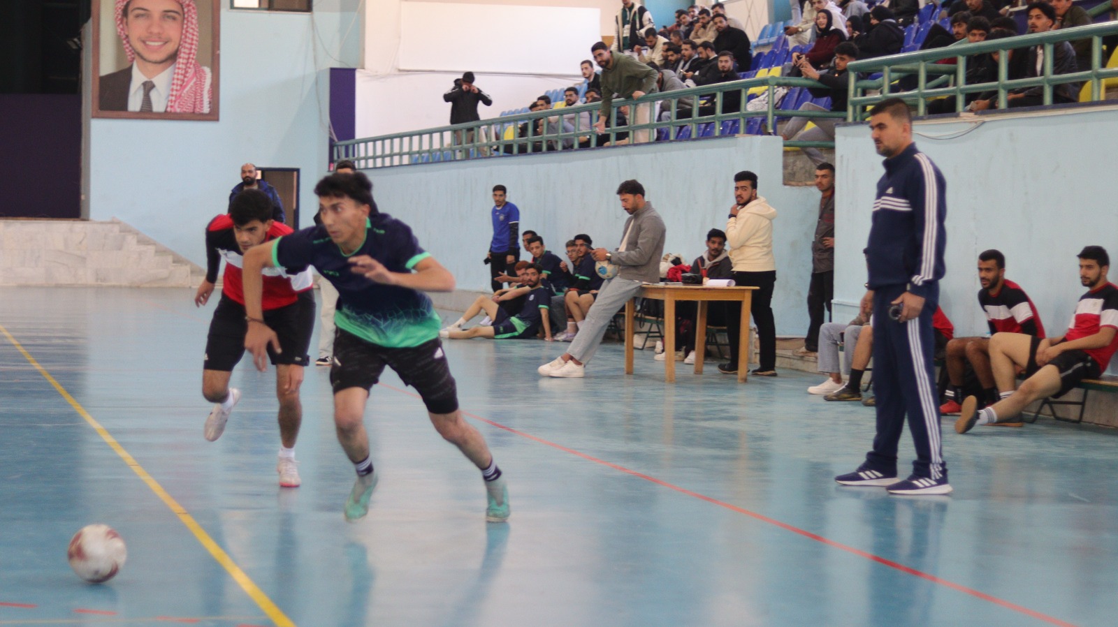 وشهد اللقاء حضوراً جماهيرياً من طلبة الجامعتين، الذين تفاعلوا مع مجريات المباراة وشجعوا الفريقين بروح رياضية عالية.
