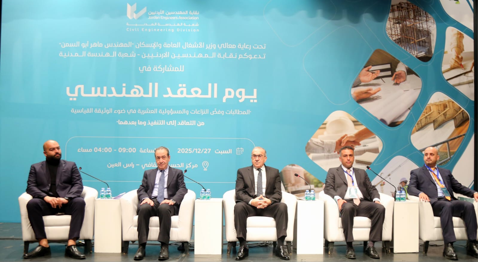 وأشار إلى أن محاور يوم العقد الهندسي، الذي جرى تنظيمه في مركز الحسين الثقافي، شملت المسؤولية العشرية كضمانة للسلامة، المطالبات والأوامر التغييرية كأدوات لإدارة المتغيرات، إضافة إلى التحكيم وفض الخلافات كبدائل حضارية تضمن العدالة وتدعم استمرارية المشاريع.٢