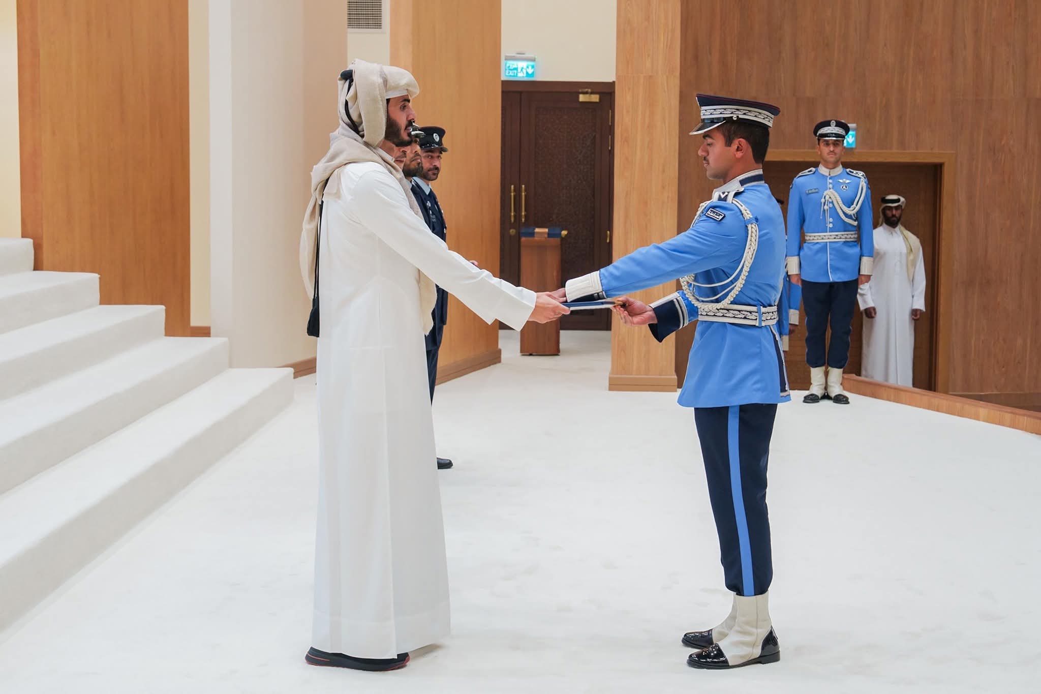 وخلال الحفل، قام سعادة الشيخ خليفة بن حمد بن خليفة آل ثاني بتسليم الشهادات للخريجين، مهنئًا إياهم على هذا الإنجاز، ومتمنيًا لهم التوفيق في أداء مهامهم الأمنية وخدمة أوطانهم بكل إخلاص واقتدار.