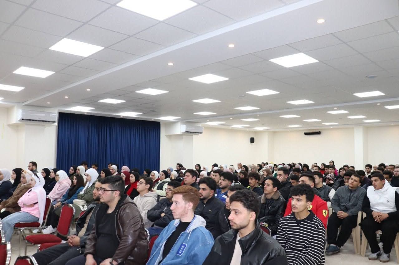 كما التقى عطوفة عميد الكلية الدكتور موسى محمود الحافظ الطلبة الجدد، مهنئا بشهر رمضان المبارك معلنا ان اطلاق منصة حطين التعليمية للخدمات الطلابية اكاديميا واداريا وماليا عن بعد وعبر تطبيق الموبايل مؤكدًا حرص الكلية على توفير بيئة أكاديمية تكنولوجية داعمة للإبداع والتميز، ومشددًا على أهمية مشاركة الطلبة في الأنشطة الطلابية والمجتمعية التي تسهم في بناء شخصيتهم وتأهيلهم لسوق العمل .