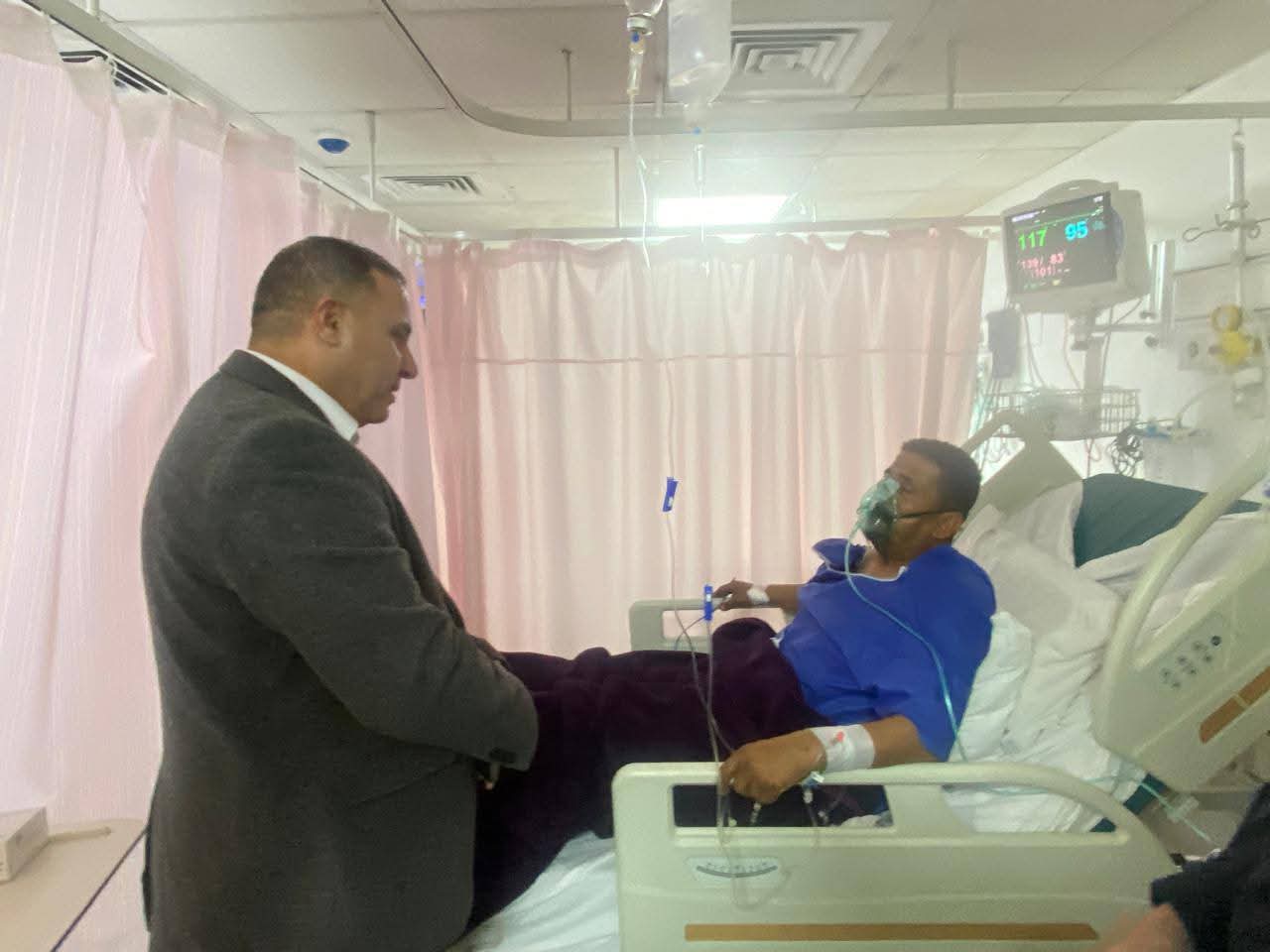 وخلال الزيارة، اطمأن المحافظ على الحالة الصحية للمصابين، واستمع إلى شرح من الكوادر الطبية حول أوضاعهم، موجهاً بضرورة تقديم أقصى درجات الرعاية الصحية لهم حتى تماثلهم للشفاء التام.