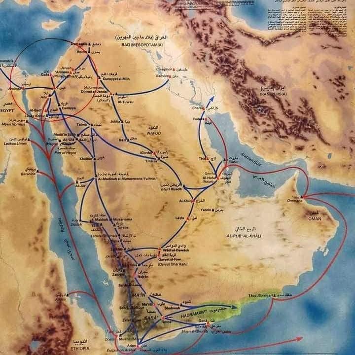 ​ولأن الأراضي الخصبة وموارد المياه كانت شحيحة في معظم شبه الجزيرة العربية ومقتصرة على أطرافها كاليمن وعمان ، فقد برع العرب في تجارة السلع الثمينة غير الزراعية ، واشتهروا بنقل البخور والحرير والأحجار الكريمة . وقد دلت خطوط التجارة البرية والبحرية القديمة ، ومواقع العثور على المباخر المزخرفة والمحفورة ، على أن نقاط التجارة الأبعد للعرب قد حددت تمركزهم بعيداً عن الاستيطان الدائم في مناطق كبلاد الشام المسماة بسوريا الطبيعية او التاريخية .