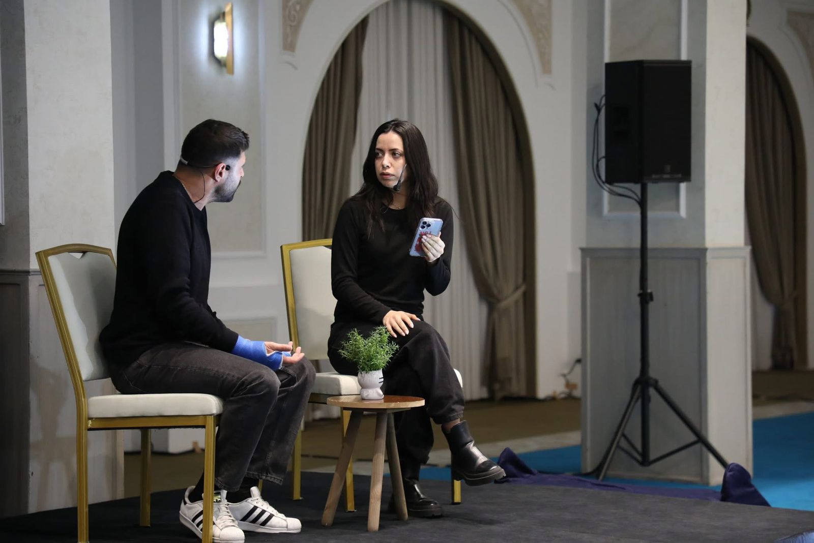 مندوبةً عن وزير الشباب، رعت مديرة مركز إعداد القيادات الشبابية الدكتورة شروق الهاشم، اليوم الثلاثاء، فعاليات العرض المسرحي التفاعلي "افتراض" للتوعية بالمخاطر الرقمية، والذي نظمته مؤسسة آرك ضمن مشروع تماسك، بحضور مسؤول مسار الإبداع في المشروع الدكتور مهند عربيات، والرئيس التنفيذي لشركة الجوهر للدراسات والأبحاث سليم نُقل، وعدد من ممثلي السفارات في الدول الصديقة ومؤسسات المجتمع المدني.