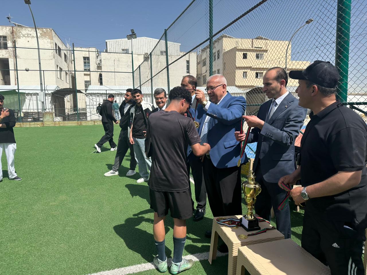 وفي مراسم التتويج، تم توزيع الميداليات الذهبية وكأس البطولة على الفريق الفائز بالمركز الأول، والميداليات الفضية للفريق صاحب المركز الثاني. كما حصل الطالب معاذ كنعان على جائزة أفضل لاعب في البطولة، فيما توّج اللاعب فراس فارس بلقب هداف الدوري.