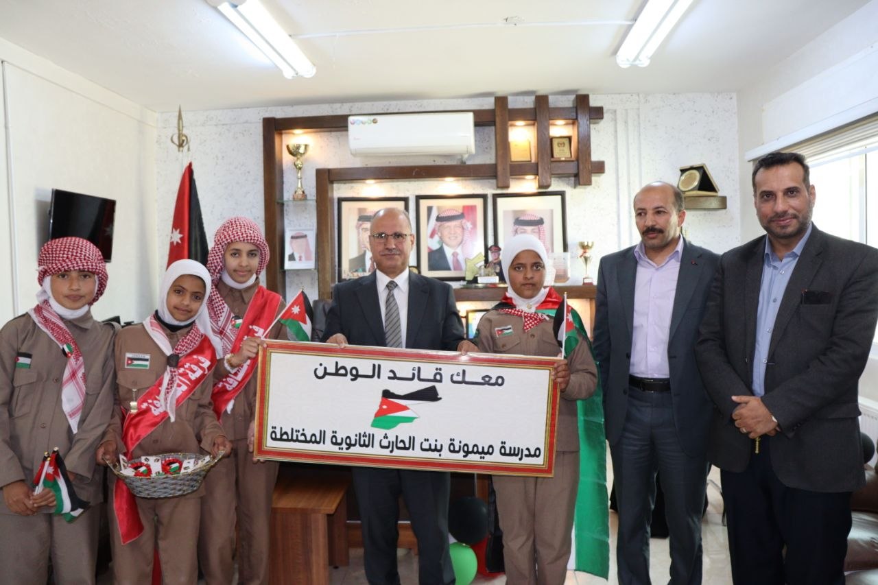 استقبل مدير التربية والتعليم لمنطقة البادية الجنوبية، الدكتور عماد السفاسفة، اليوم الأحد 19/4/2026، طالبات مبادرة "معك مولاي" من مدرسة ميمونة بنت الحارث، ضمن احتفالات المديرية بيوم العلم الأردني.