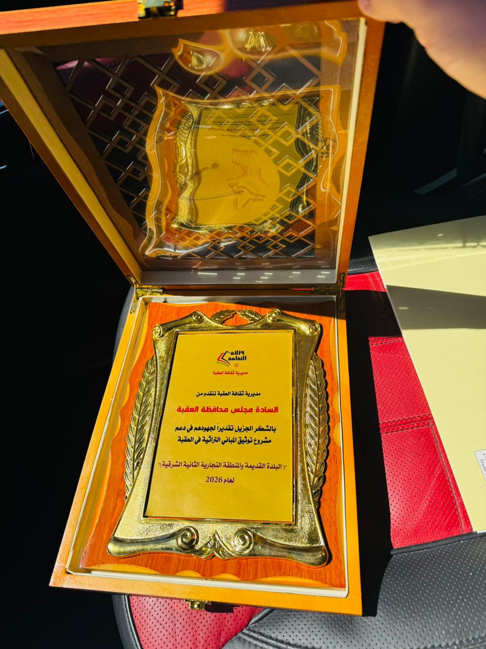 وجاء هذا التكريم خلال فعالية رسمية أُقيمت بهذه المناسبة، بحضور مدير ثقافة العقبة طارق البدور، حيث تسلّم درع التكريم نائب رئيس مجلس المحافظة المهندس طه ياسين، نيابةً عن المجلس.
