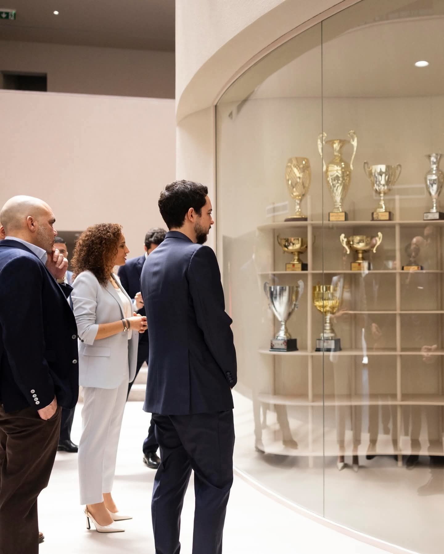 واستمع سموه من المسؤولين والمعنيين في الاتحاد، إلى شرح حول استعدادات المنتخب للمشاركة في نهائيات كأس العالم، وجهود تطوير المنظومة الكروية في الأردن.