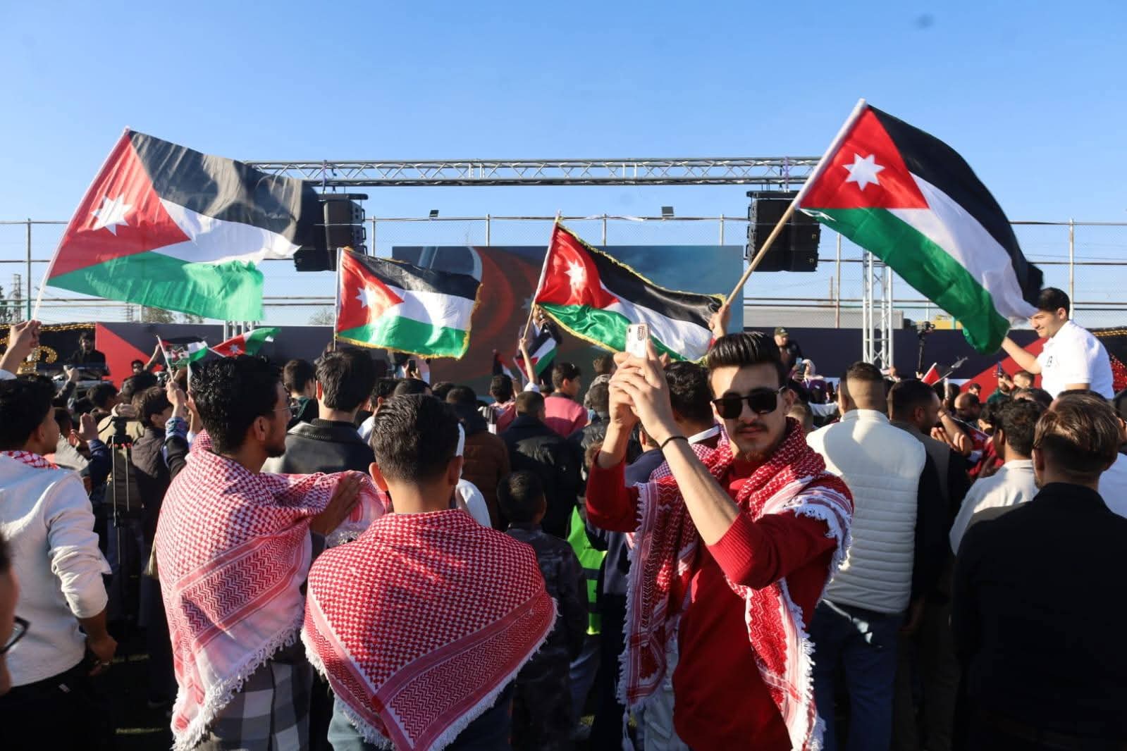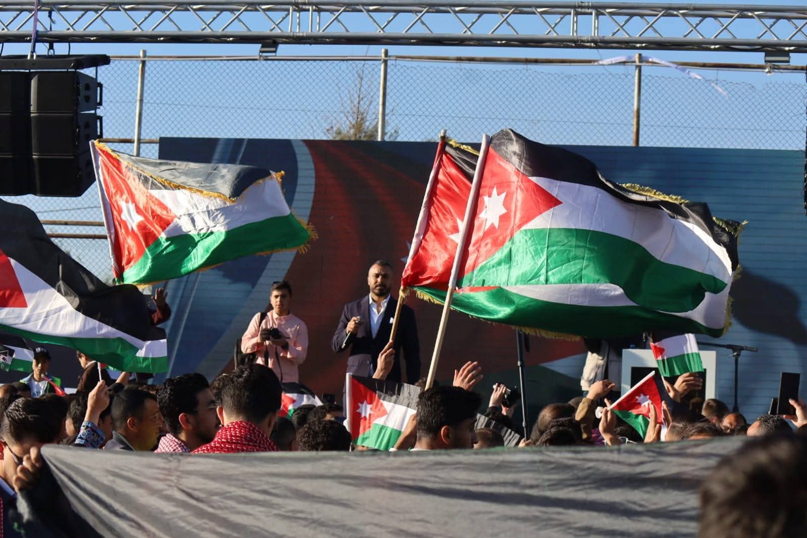 وتخلل الحفل عدد من الفقرات الوطنية والثقافية، حيث ألقى الإعلامي والشاعر حسن المحارمة قصيدة وطنية عبّرت عن رمزية العلم في وجدان الأردنيين، إلى جانب فقرات غنائية وطنية أحياها الفنانان حسين السلمان وسعد أبو تايه، وسط تفاعل جماهيري كبير، إضافة إلى مشاركة مميزة لأطفال تجمع ذوي الإعاقة الأردني بفقرة فنية لاقت استحسان الحضور.
