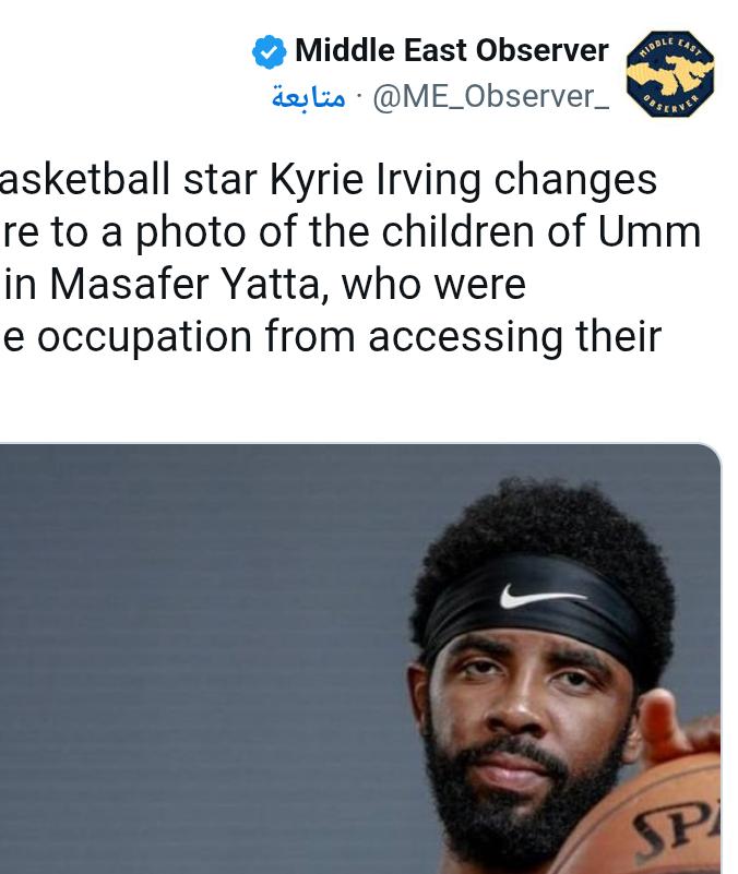 وغيّر كايري إيرفينغ صورته الشخصية على حسابه الرسمي على "إنستغرام" الذي يتابعه أكثر من 20 مليون شخص، بأخرى تؤكد متابعته الحثيثة لما يجري من انتهاكات وجرائم إسرائيلية بحق الفلسطينيين سواء في قطاع غزة أو الضفة الغربية.